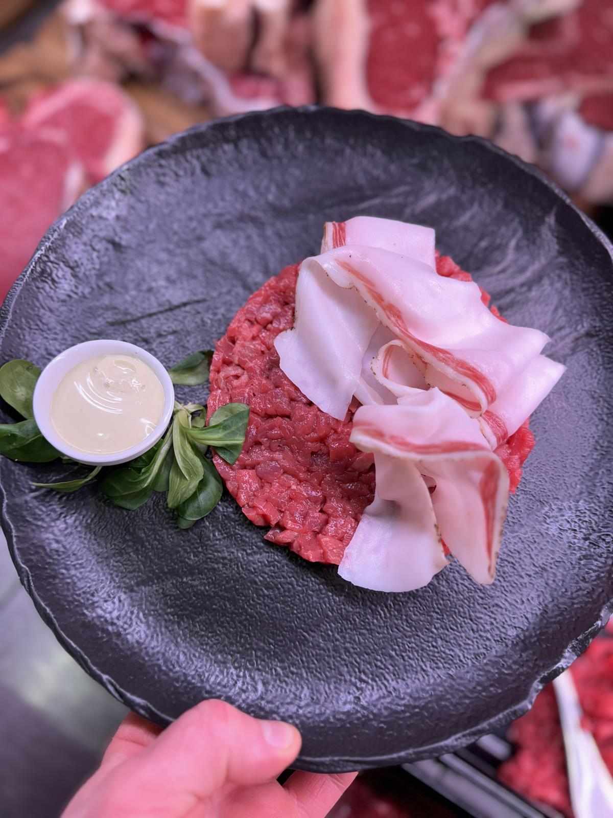 Dopo anni di tradizione, Giuseppe e Nicola hanno aggiunto un’area ristoro nella storica macelleria di famiglia, per offrire la possibilità di gustare una vasta gamma di tagli di carne: dalle tartare alle tagliate, dalle costate alle fiorentine. Oltre agli hamburger e ai taglieri di formaggi, offrono anche una selezione di vini rossi, birre e gin, senza dimenticare gli amari e i whisky, abbinati a ciascun piatto del menu.